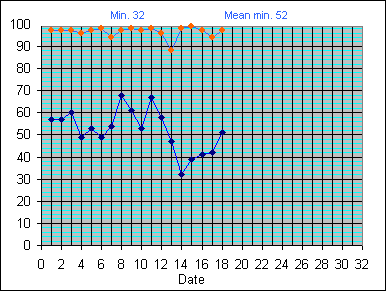 Relative Humidity (%) (Min and Max): August 2010
