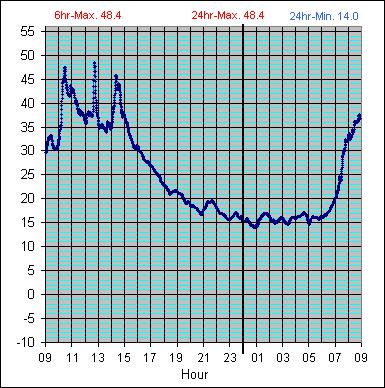 | Dew Point Temperature (°C): Fri 9-10-09