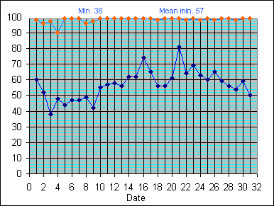 Dew Point Temperature(°C): (Min and Max) July 2004 |