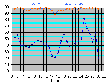 Dew Point Temperature(°C): (Min and Max) June 2004 |