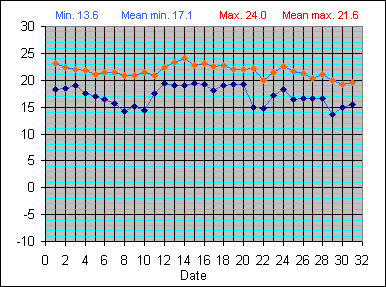 Dew Point Temperature(°C): (Min and Max) August 2004 |