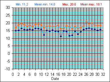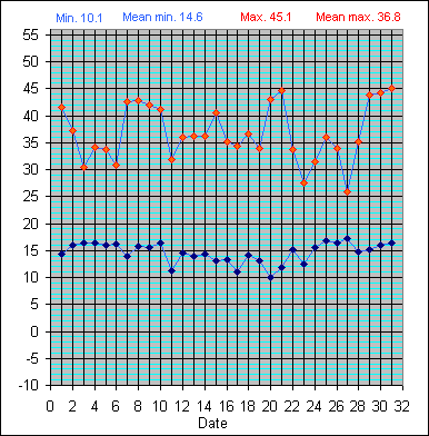 Screen Temperature(°C) (Min and Max): August 2010