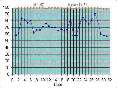 Relative Humidity (%) (Min and Max): July 2010