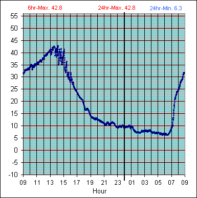 | Dew Point Temperature (°C): Tue 6-9-05