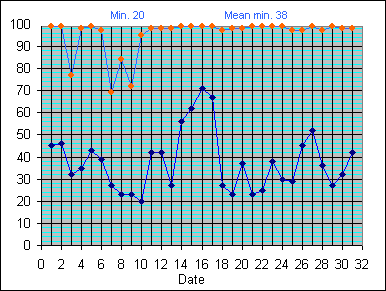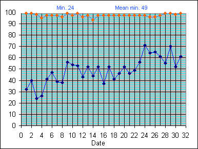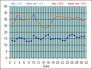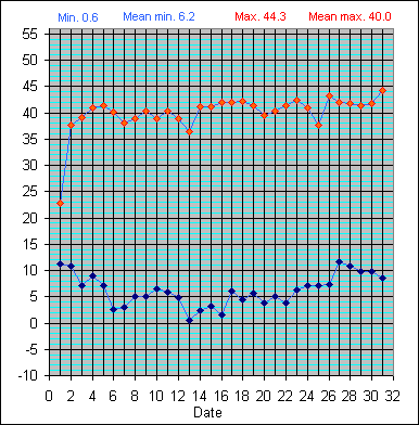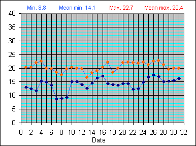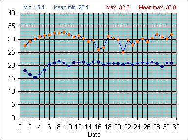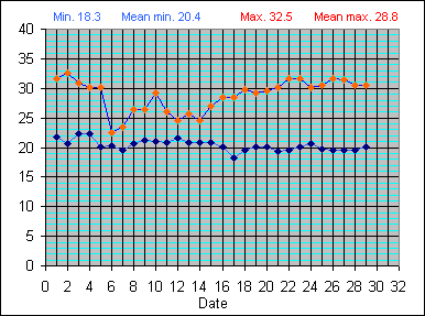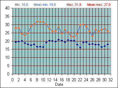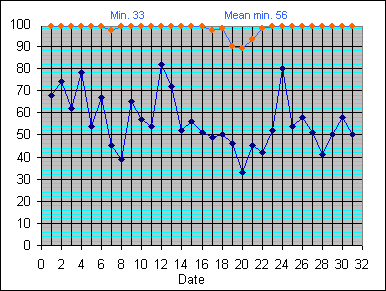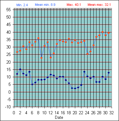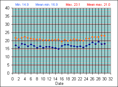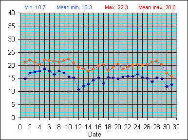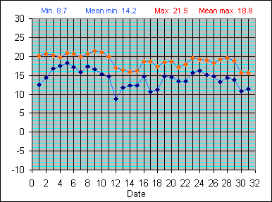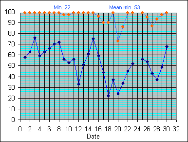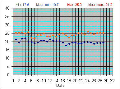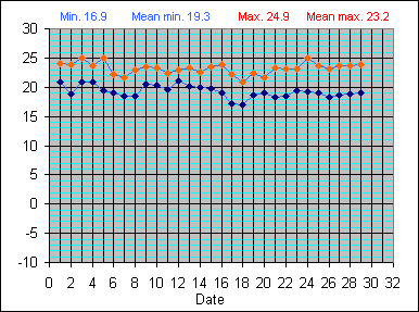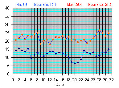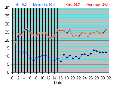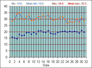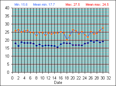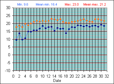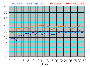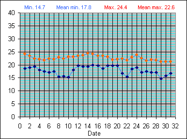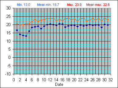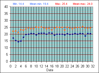 Dew Point Temperature(°C): (Min and Max) August 2004 |