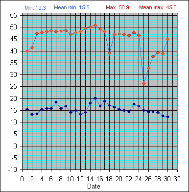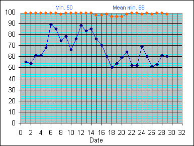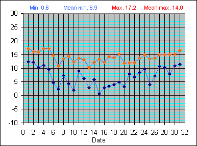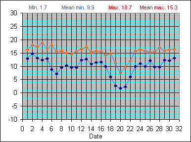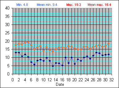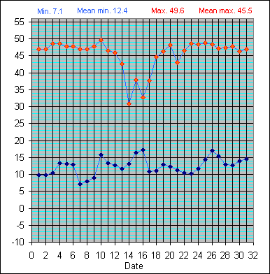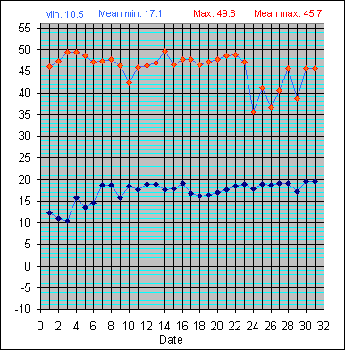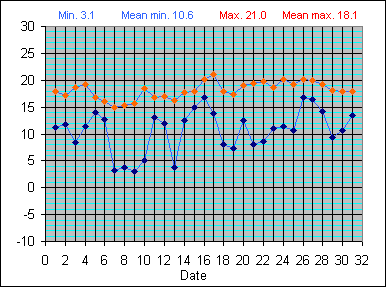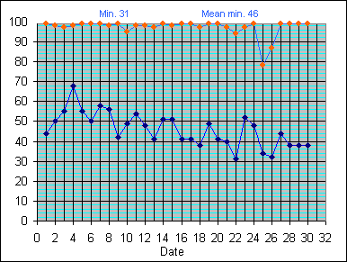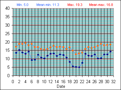 Dew Point Temperature(°C): (Min and Max) October 2004 |