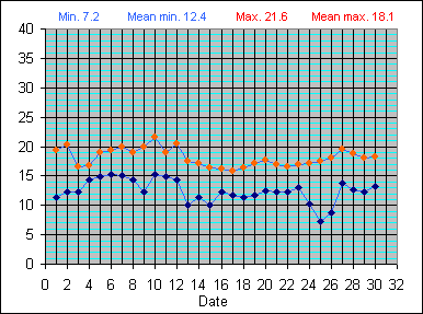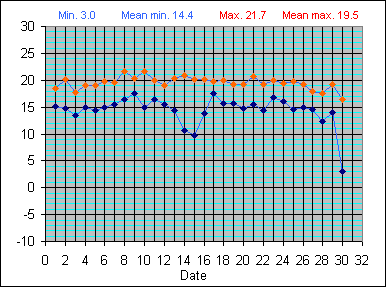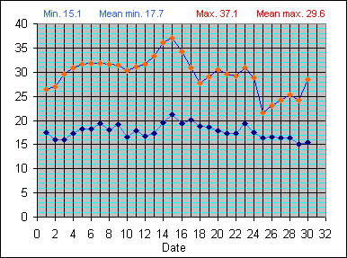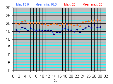 Dew Point Temperature(°C): (Min and Max) June 2004 |