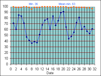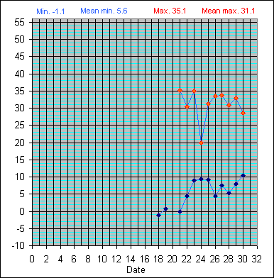 Dew Point Temperature(°C): (Min and Max) March 2004 |