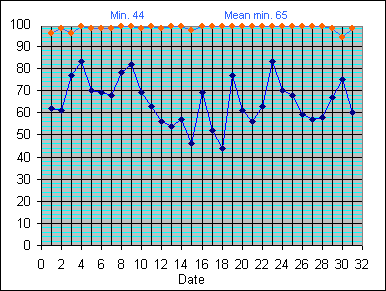 Dew Point Temperature(°C): (Min and Max) July 2004 |