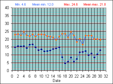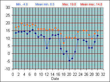 Dew Point Temperature(°C): (Min and Max) April 2004 |