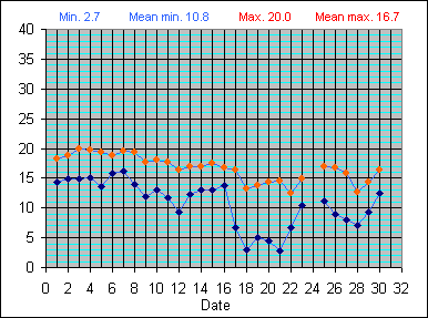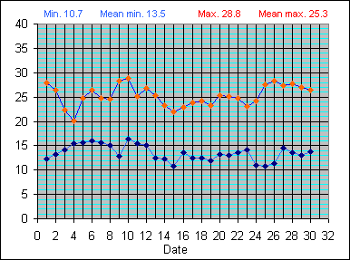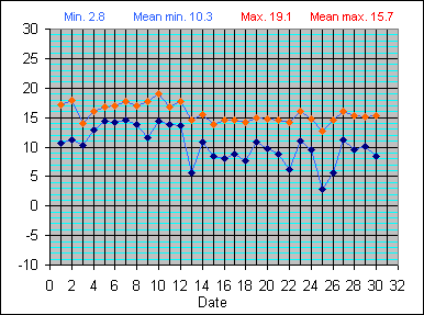 Dew Point Temperature(°C): (Min and Max) November 2004 |
